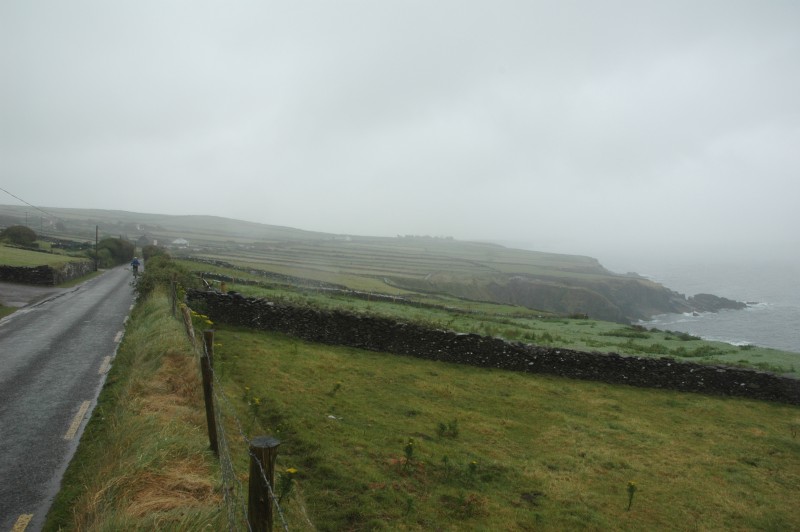 After drying out over lunch, we continued around the Dingle Peninsula. The coast became less steep and there were several old buildings to break up the ride. There was a final pass through wet weather before we returned to Dingle.