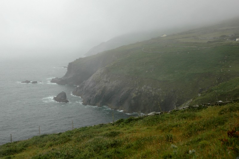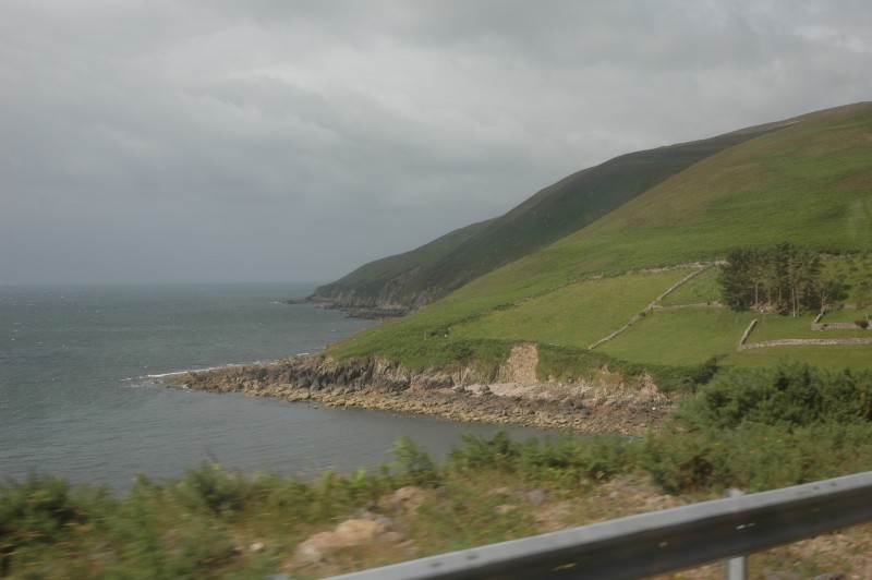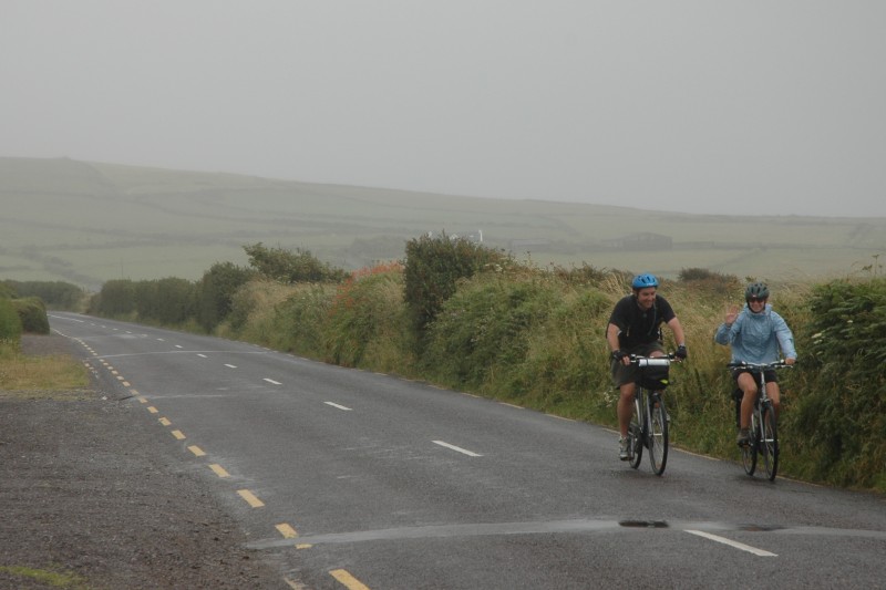 In the morning we took a bus along the coast to Dingle. From Dingle, we cycled a loop to Slea Head on Dingle Peninsula and back to Dingle for the night. The first part of the bike ride was along spectacular cliffs but unfortunately it was raining hard – our wettest day on the trip.