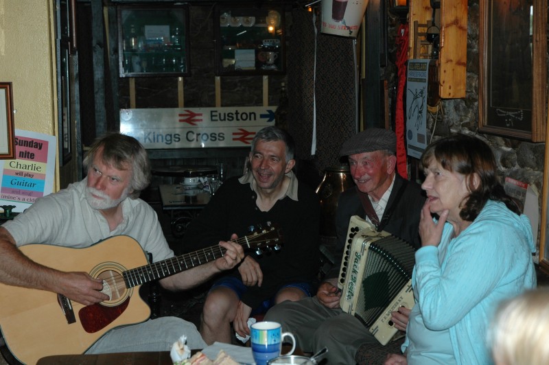 Starting in Dingle, the first task was to climb over the highest highway pass in Ireland, Conair Pass. The long steady climb through open fields and heather had views back toward Dingle and once over the pass down into Brandon Bay to the north. After descending the pass, it was mostly flat to Camp, and the Railway Tavern. There was live music, drinks and sandwiches for lunch.
