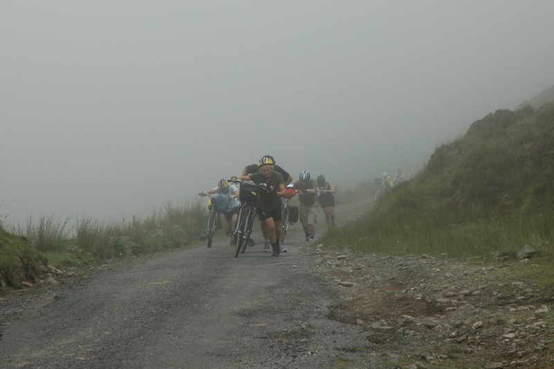 After the lunch, we started the climb into the mountains and into the fog. This pass rated a ‘very steep climb’ for the last section. From the pass, it was a quick descent out of the fog and into the sunshine on the way into Killorglin. Our B&B was about 1km outside of town. Unfortunately I do not have any photos of the evening festivities. Thanks to Joe for the wine and paté.