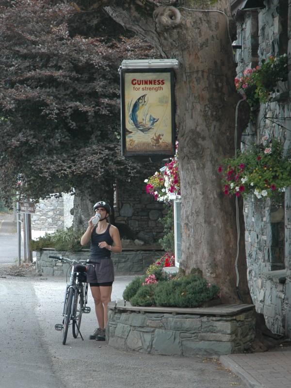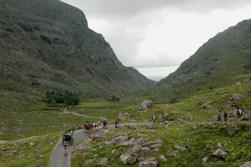 Our morning ride paralleled the main road toward Killarney and Beaufort. There we turned into the mountains and started climbing to Kate Kearney’s Cottage for a rest. From Kate’s it was a climb alongside the horse drawn traps to the top of the Gap of Dunloe.