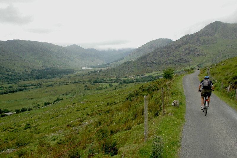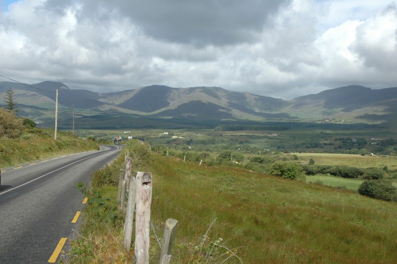 From the top, we descended down to Glencar and lunch. After lunch we cycled along a gentle valley with lakes before a final pass and descent to Glenbeigh for the night. After arriving at Glenbeigh, some people cycled the 4km down to the ocean.