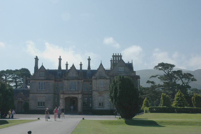 In the morning we got our bicycles and spent some time getting those figured out. From Killarney, we biked south to Killarney National Park. Our first point of interest was Muckross Abbey and soon after, Muckross House. From Muckross House, we cycled along a path between the Killarney Lakes before rejoining the main highway for its climb to the pass at Molls Gap. We had lunch at the restaurant at Molls Gap.