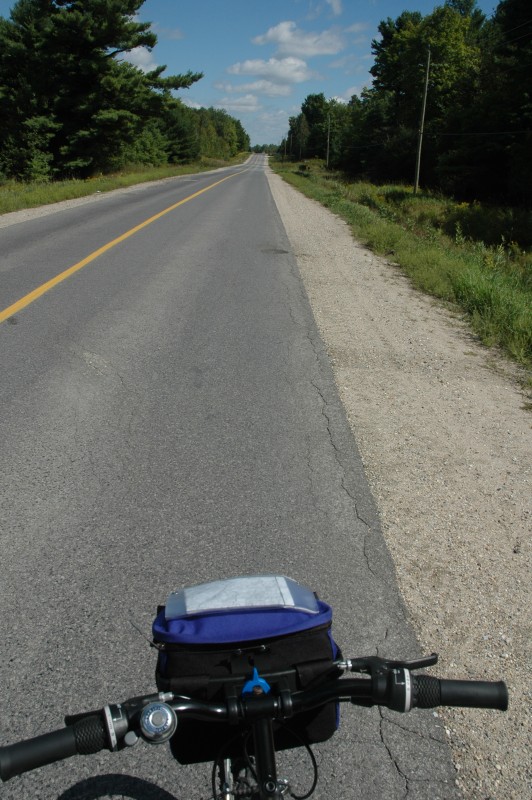 From there, I continued north, along Highway 11 and 10 to Perth Road. Then I branched off the highway onto the Cataraqui Trail. After an exhausting ride along this trail, I had lunch at Chaffey’s Locks as the rain finally ended. From there, I headed north to Crosby and then west to Westport, arriving at 4:30 (~80 km). After a shower and nap at the Toybox B&B, I walked into Westport for dinner.