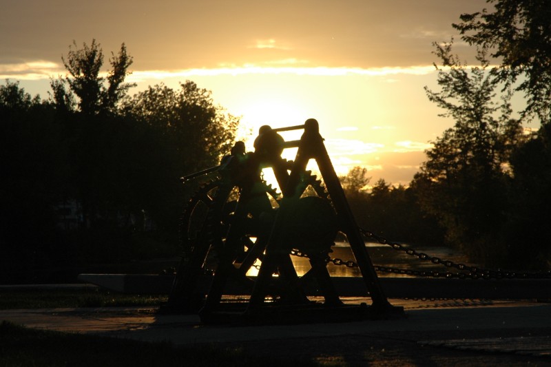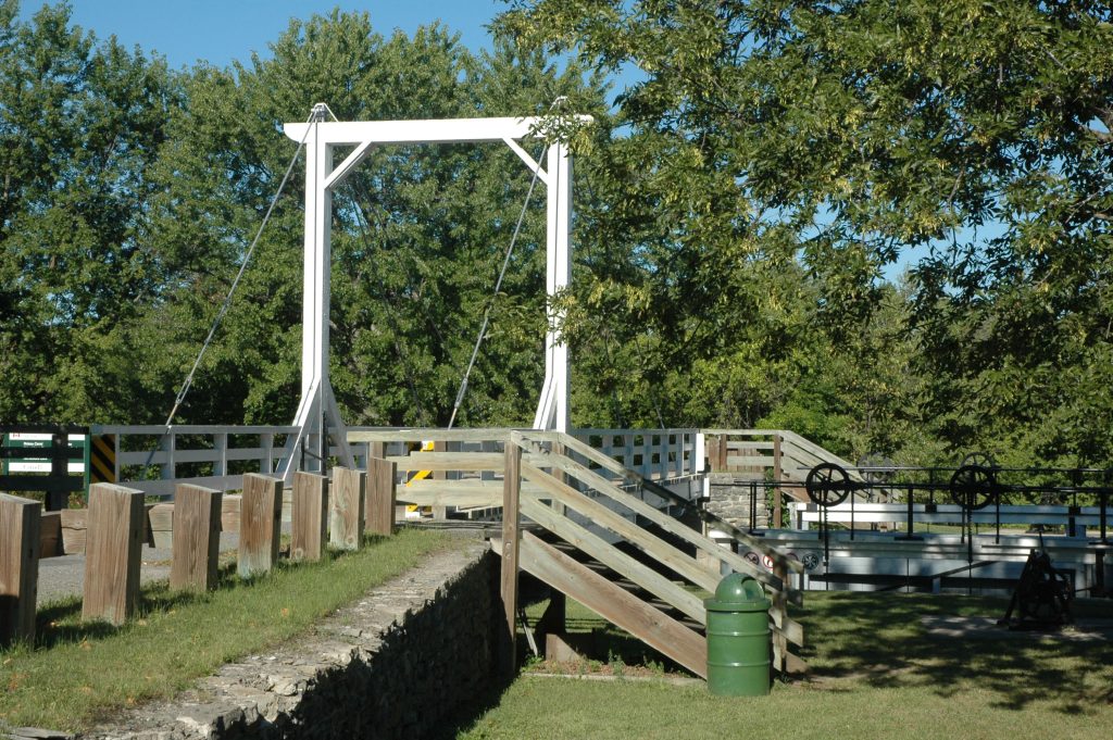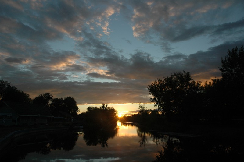 In Smiths Falls, I started by going to the Hershey’s Factory and saw thousands of peanut butter cups being made (no photos allowed), but I didn’t buy anything from the giftshop. Another attraction was the Scherzer rolling lift bridge used by the, now abandoned, Canadian Northern Railway. In the evening in Merrickville, I walked into town for dinner and again enjoyed the sunset over the Rideau River (~50 km).