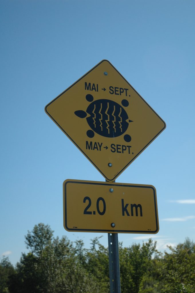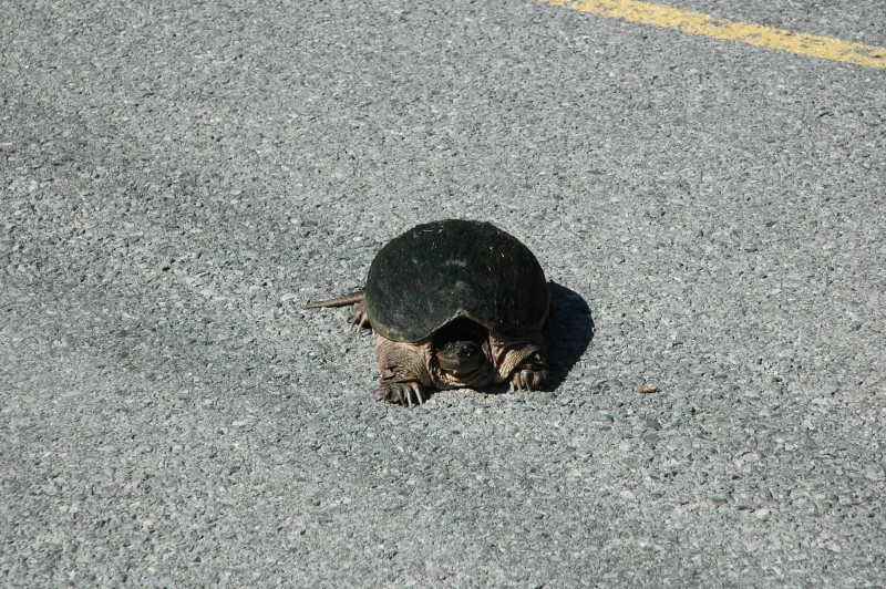 After watching a few boats go through, I continued along Highway 14 and then Highway 21 to Rideau Ferry for lunch and again crossed over the canal system. I had a run-in with a snapping turtle that I attempted to move off the highway.