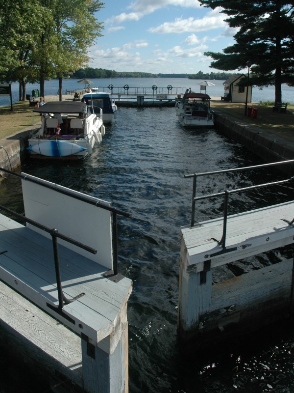 In the morning, the remains of Hurricane Katrina provided torrential rain and wind. I headed off anyway on my bicycle. My first stop was at the Kingston Mills locks just north of Kingston – it was still raining so I barely slowed down.