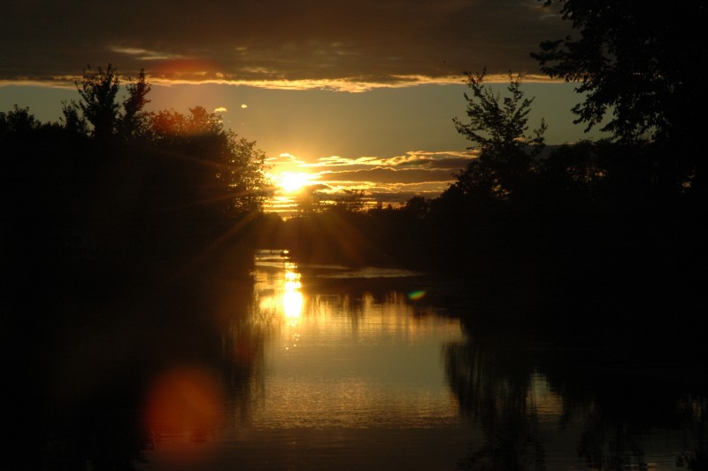From Rideau Ferry, I headed directly east, bypassing Smiths Falls along the back roads. I cut north through Kilmarnock Island, one of my favourite parts of my trip, then into Merrickville for the night (~90 km, see route). Since my B&B was about 1km out of town, after a shower and nap, I cycled back into town for dinner and to enjoy the sunset.