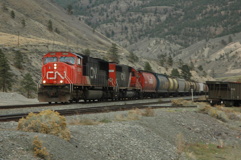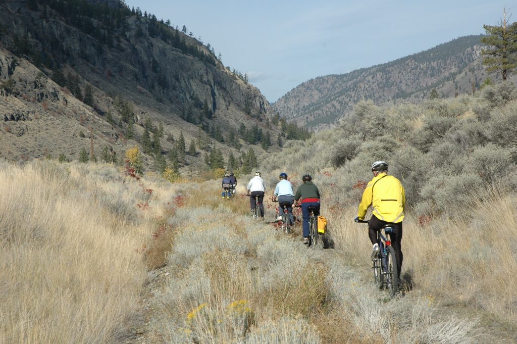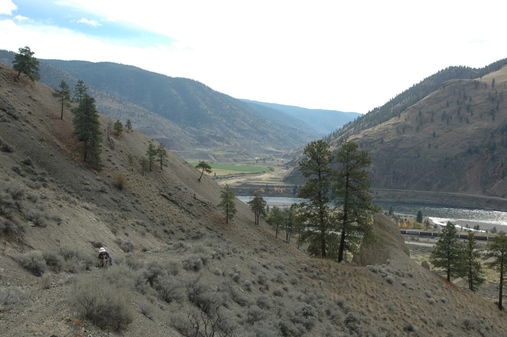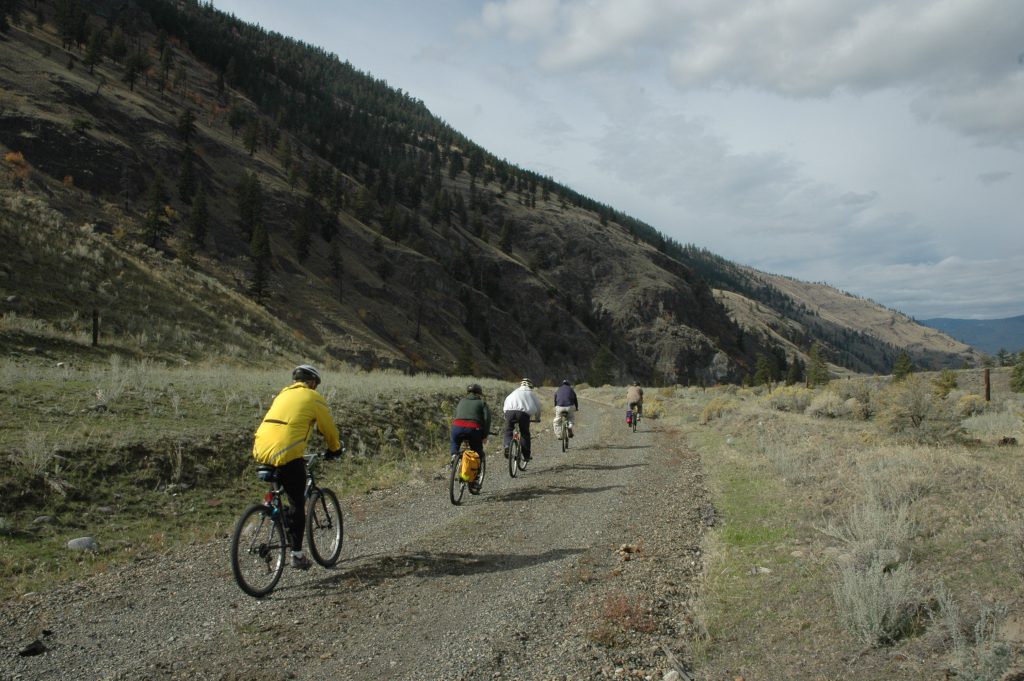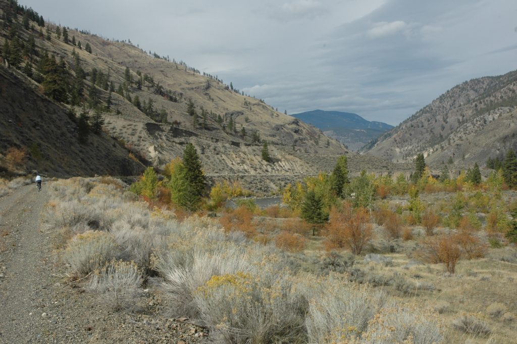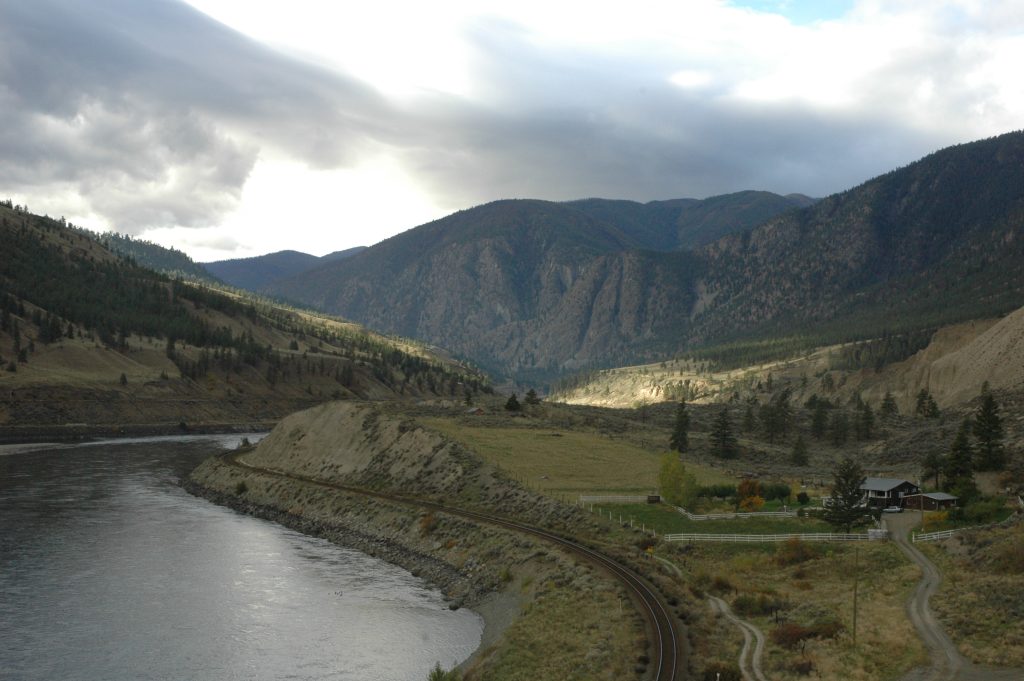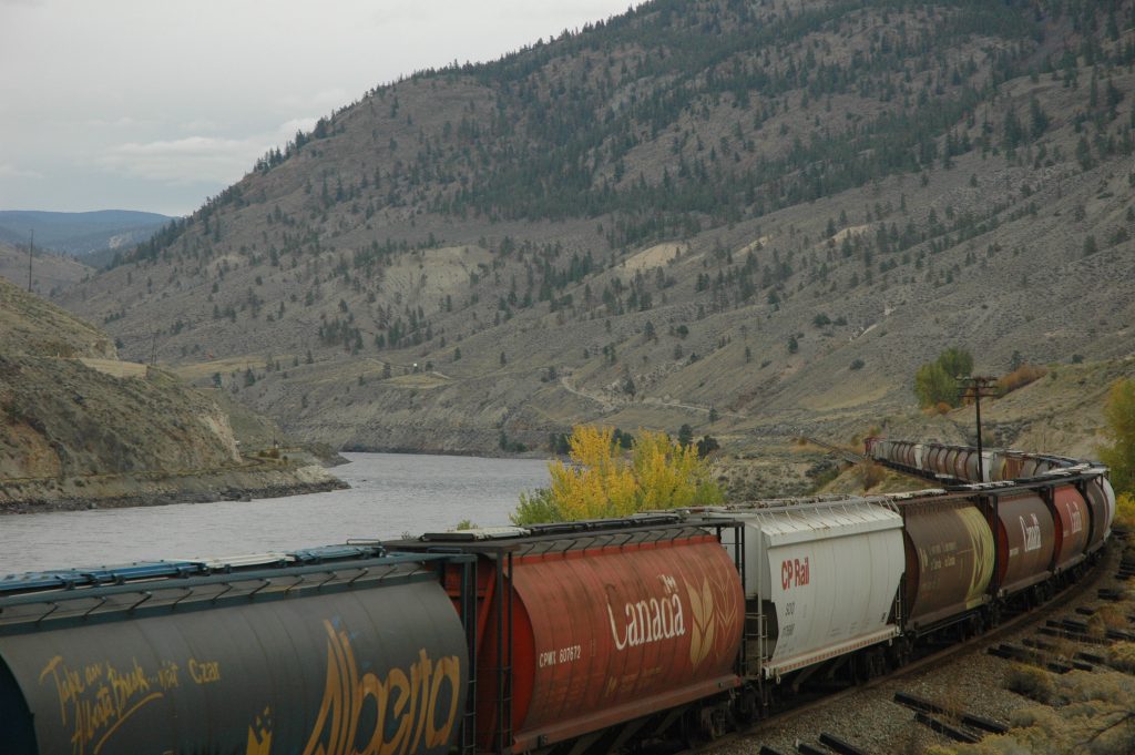 Sunday morning, I went for a bike ride around Spences Bridge (and saw some trains). Late morning, most of the group drove the bikes up the Nicola Valley about 25km. We then bicycled along the abandoned railway grade (part of CPR’s Princeton Subdivision) back to the Thompson River. Some of us did an additional bike ride north along the Thompson River for several kilometres (and saw some trains).