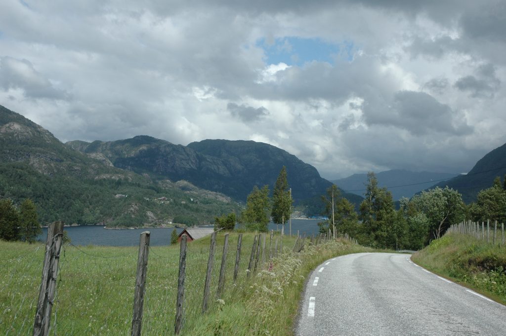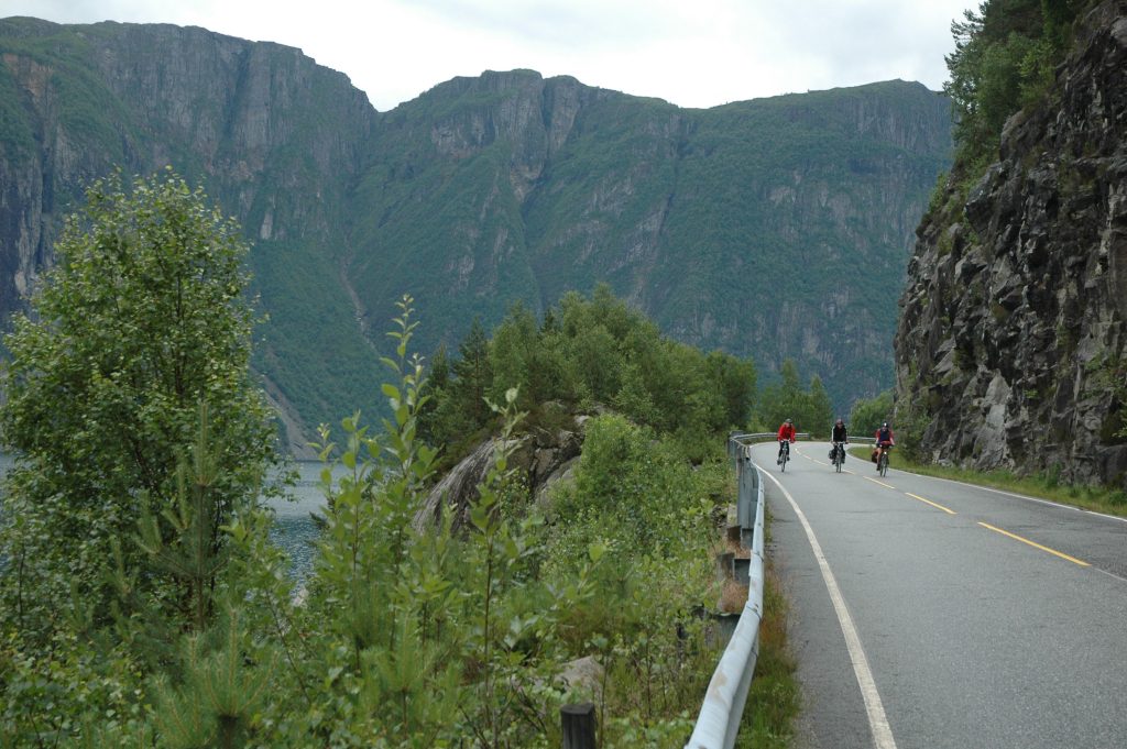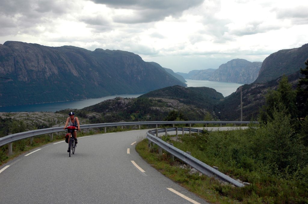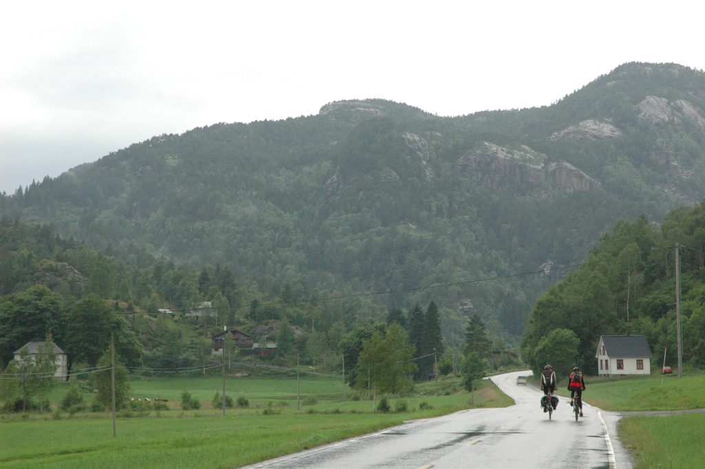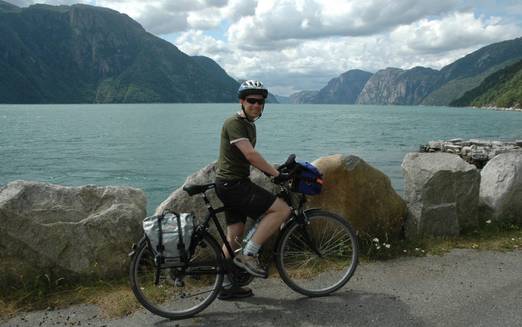 In July 2006, I took part in a group cycling trip through the fjord region of Norway. Over 7 days of cycling (8 full days), we cycled roughly from Stavanger to Bergen meandering in and out of the fjords under our own power, but also on ferries and trains.
