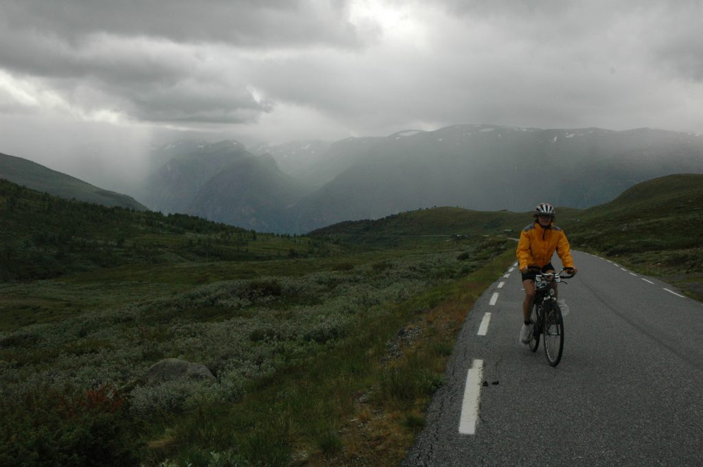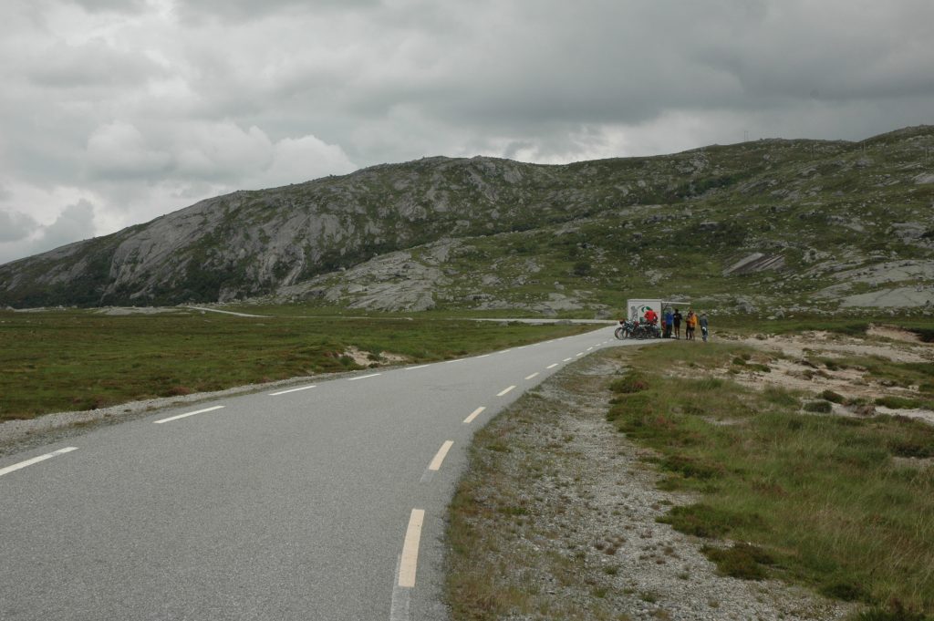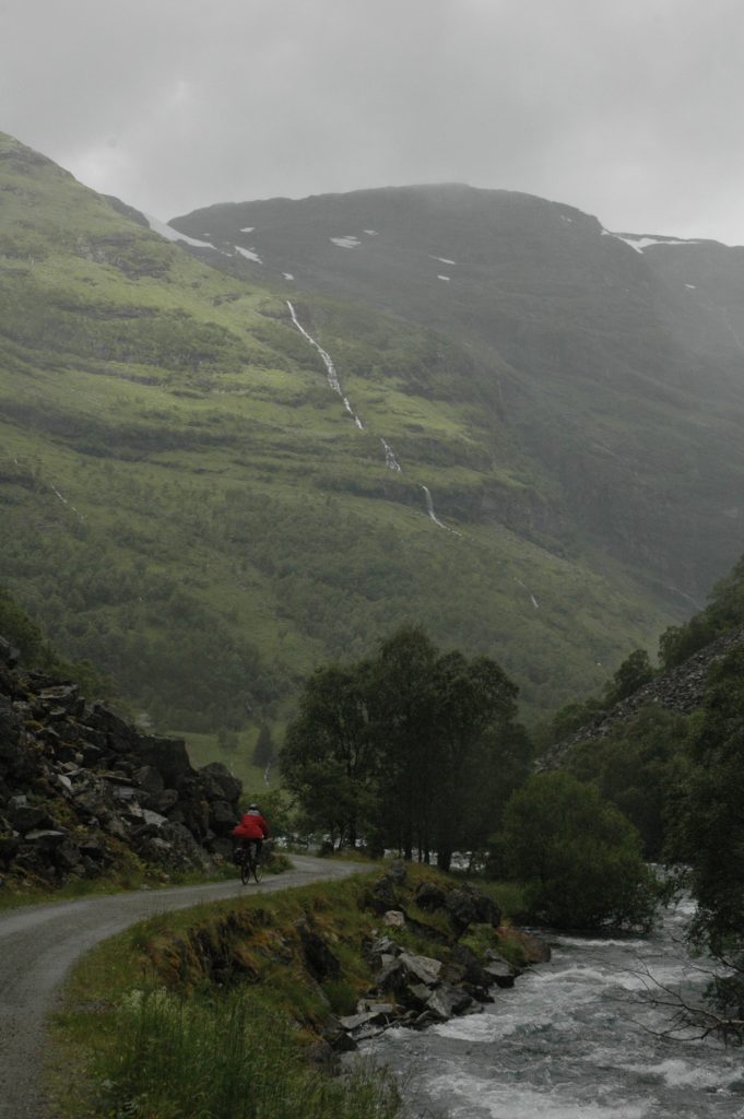 The main highway between Bergen and Oslo avoids this pass by going through the world’s longest highway tunnel (24.5km). Marcel drove this route with the support vehicle to get the bikes and luggage to Laerdal.