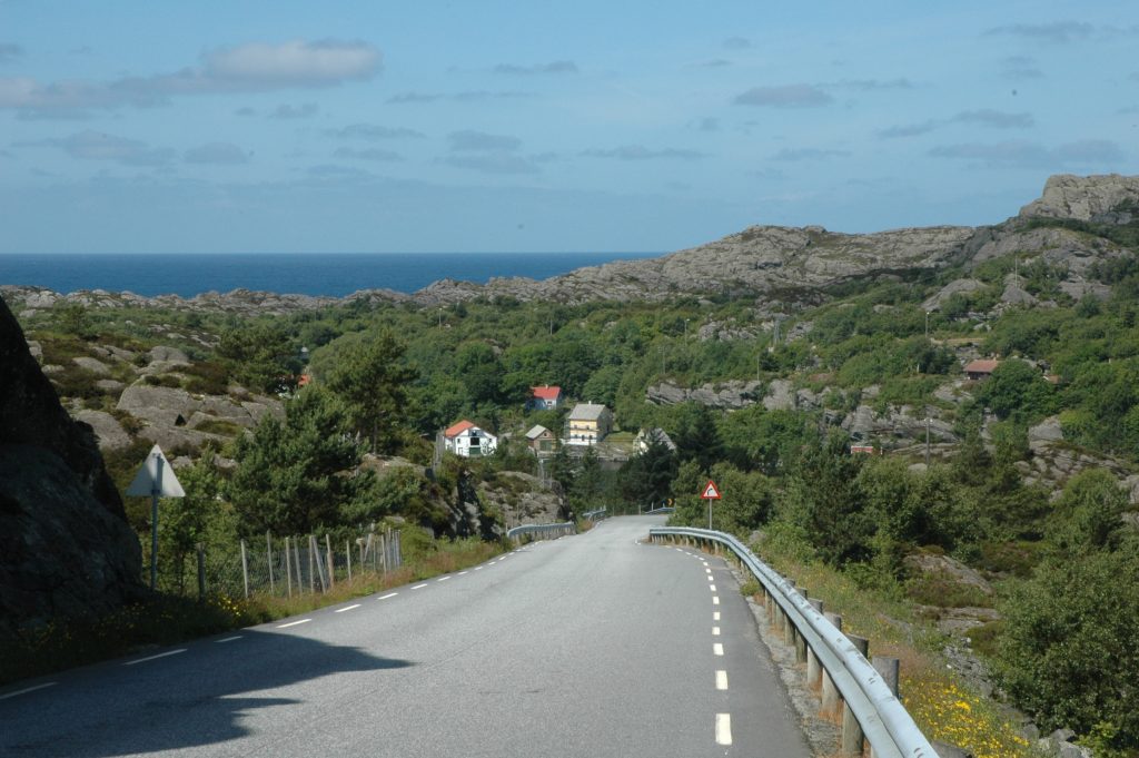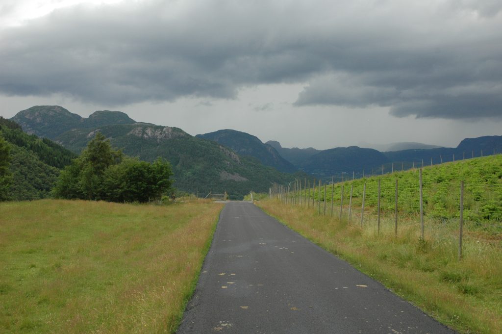 From where we got off the ferry, it was a 20km climb to a 600m pass and picnic. From the top it was a big downhill and then a series of headlands and passes to Hjelmeland for the night.