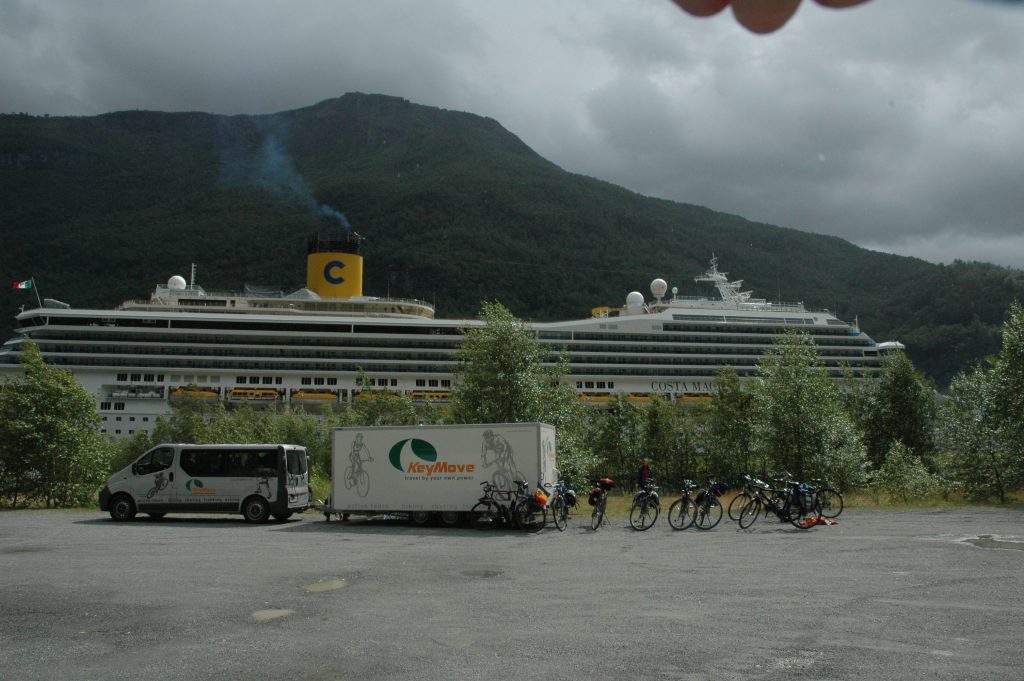 From Voss, we joined the tourists for the hour train ride up to Myrdal. As the tourists ran to catch the tourist train down the Flåm valley, we got on our bikes for the unbelievable 20km ride down the valley. I think most would agree this was the highlight of the trip. At Flåm, we rejoined Marcel for lunch next to the cruise ship dock.