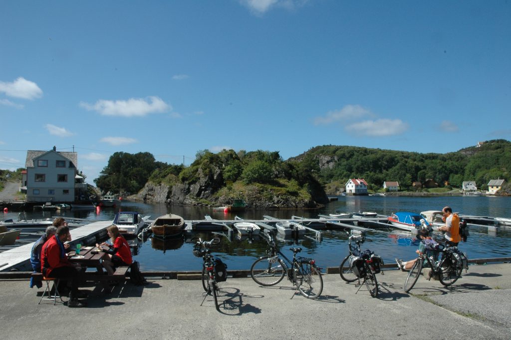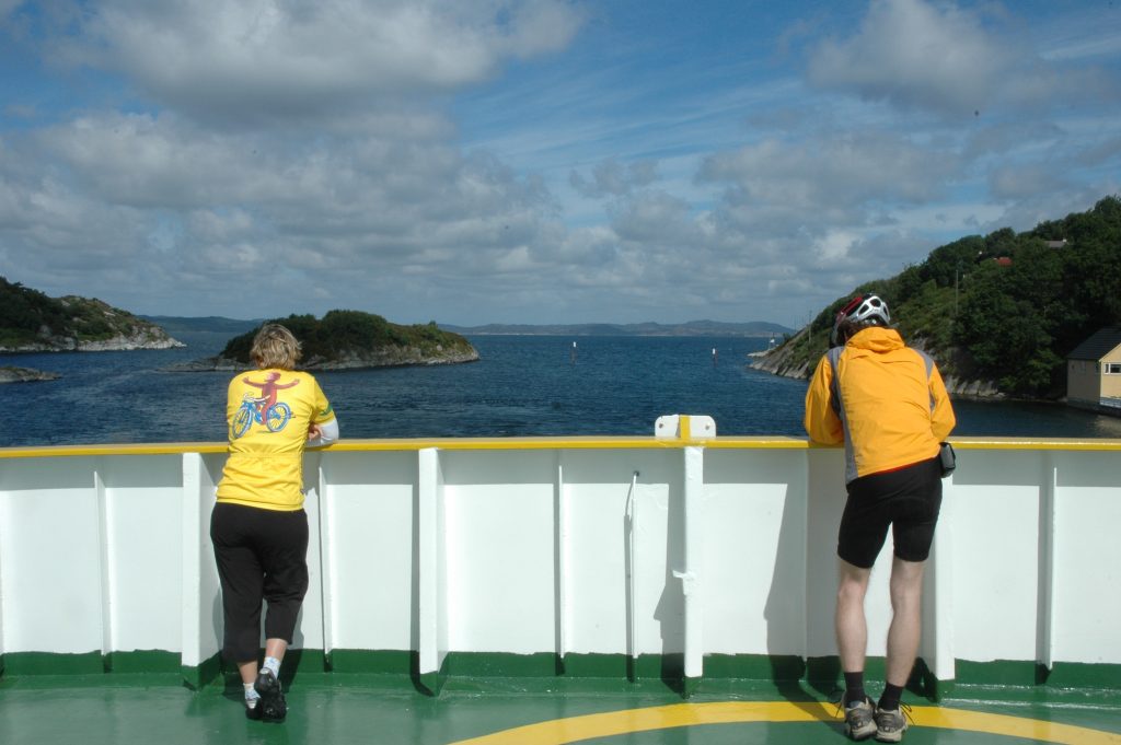 The next morning, I took an express bus north for a couple of hours to the town of Haugesund where the ferry landed. On the way I met some others who had also arrived the day before in Stavanger. At the ferry terminal, the group met for the first time and got outfitted with our bicycles provided by KeyMove, the tour company.