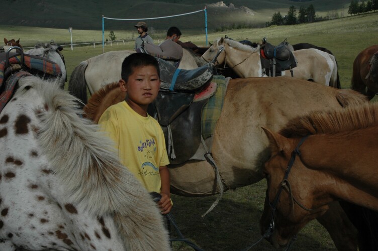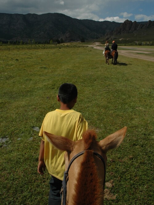 After a break for a delicious lunch provided by the ger camp, some horses were located and we went on a 2-hour horseback ride into the next valley. My horse was considered too wild for my limited horse riding skills so a small boy led my horse.