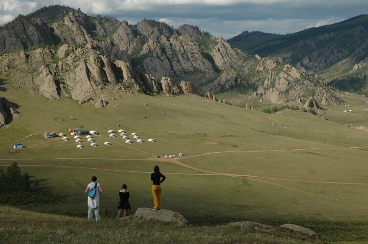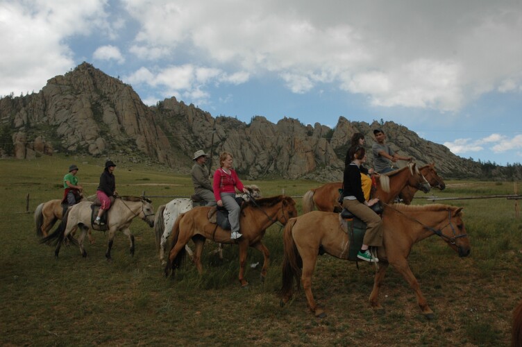 About 70km from Ulaanbaatar, we entered Terelj National Park and arrived at our ger camp. We were surrounded by grasslands, rocky outcrops and grazing livestock. There were many ger camps scattered around catering to the tourists.