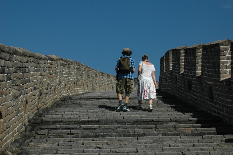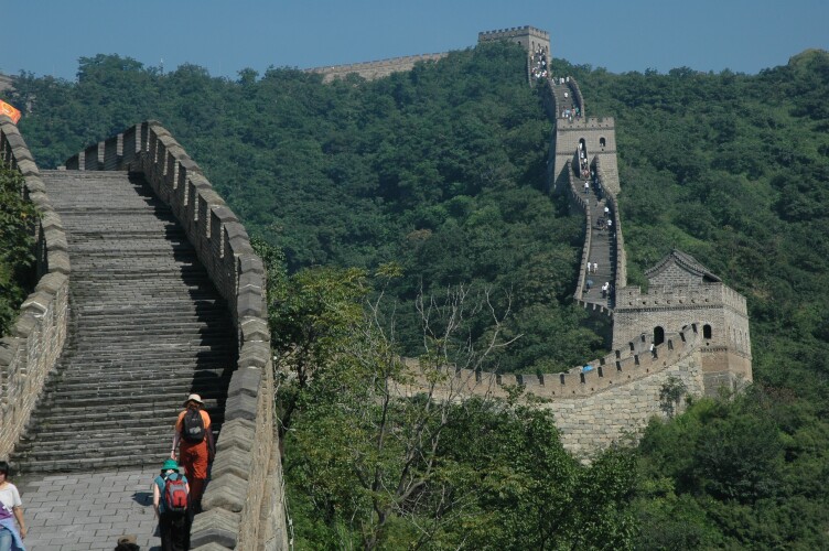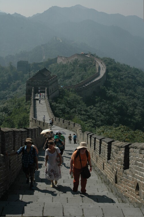 The next morning we got up early for a 70km bus ride to the Great Wall at a spot called Mutianyu. We climbed up to the Wall on a ridge and spent a couple of hours wandering between the towers. The Great Wall is an unbelievable structure – it stretches about 6000km and along our stretch was about 7 metres high and 4 metres wide.