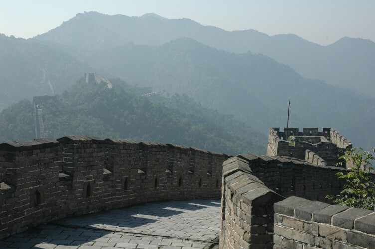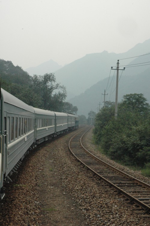 When we woke up the next morning in China, the train was climbing up to cross the mountains about 100km from Beijing. We crossed under the Great Wall in a 2km tunnel and then began the descent into Beijing.