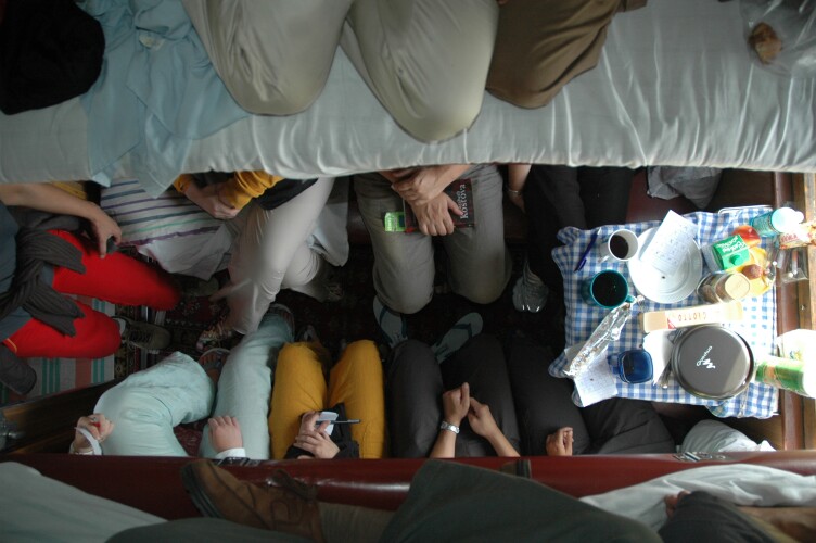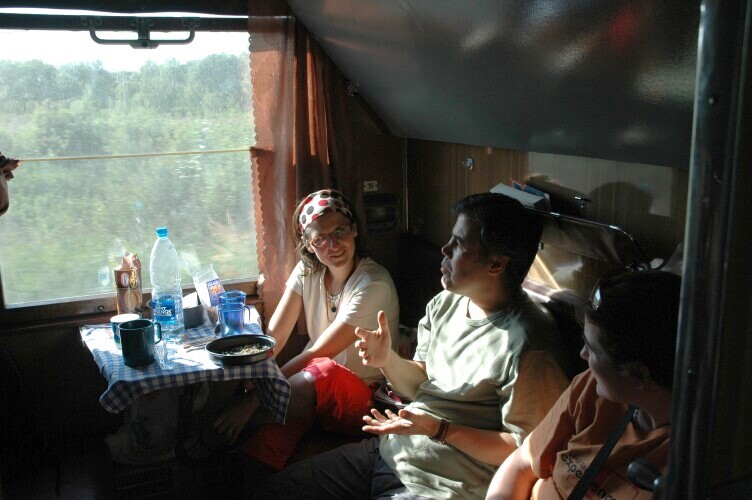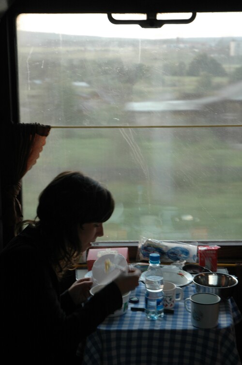 We boarded the train just after noon on August 8th. At 11am on August 12th we disembarked in Irkutsk, Siberia – 5185 kilometres and 5 timezones later. The experience of travelling for this length of time on a train is hard to describe but felt like an endless picnic. We watched the trees, towns, villages and more trees pass by the window, slept, ate, napped, chatted, read, laughed, took photos, played games, ate, visited, and laughed some more.