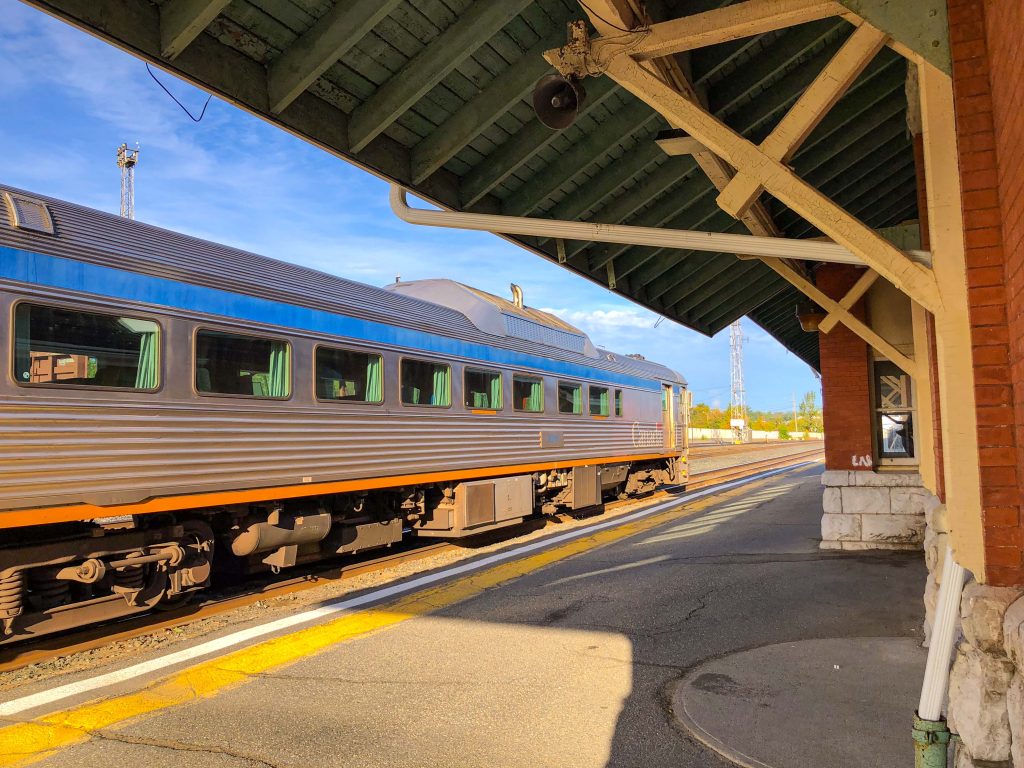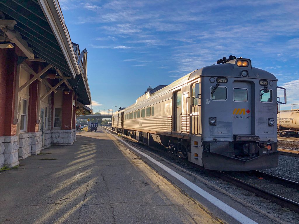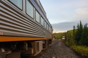 VIA Rail operates its “Scenic Adventure Route” from Sudbury to White River. This train uniquely uses two or three “Budd” cars on an 8-hour schedule through northern Ontario.