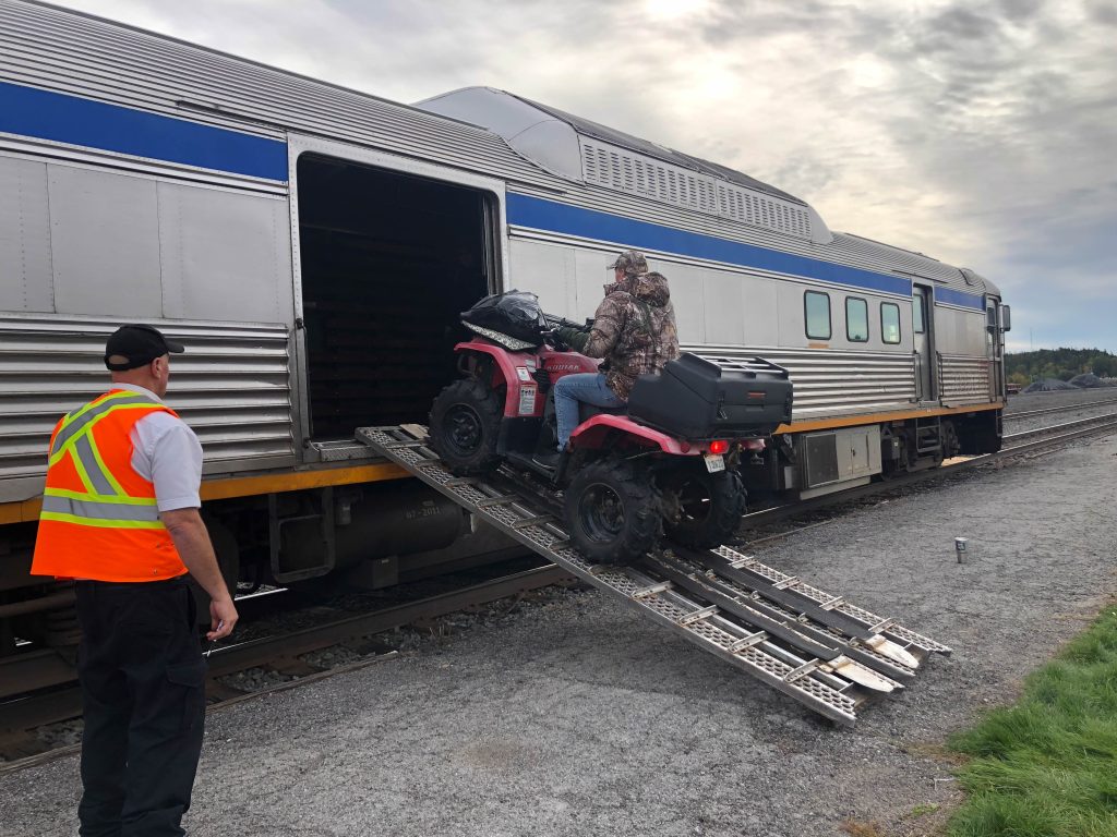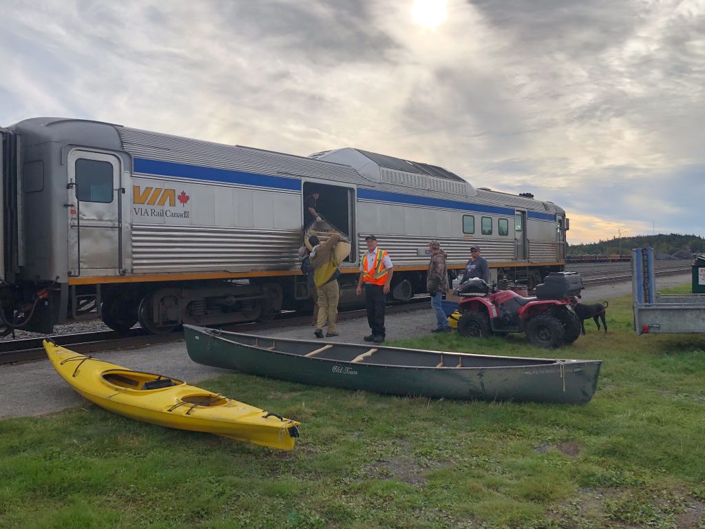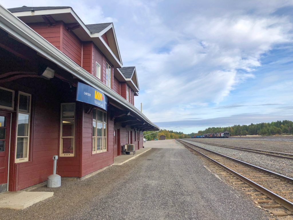 After about 45 minutes we stopped in Cartier. The crew loaded the baggage car with some ATVs, canoes and camping equipment for passengers disembarking at camps along the way.