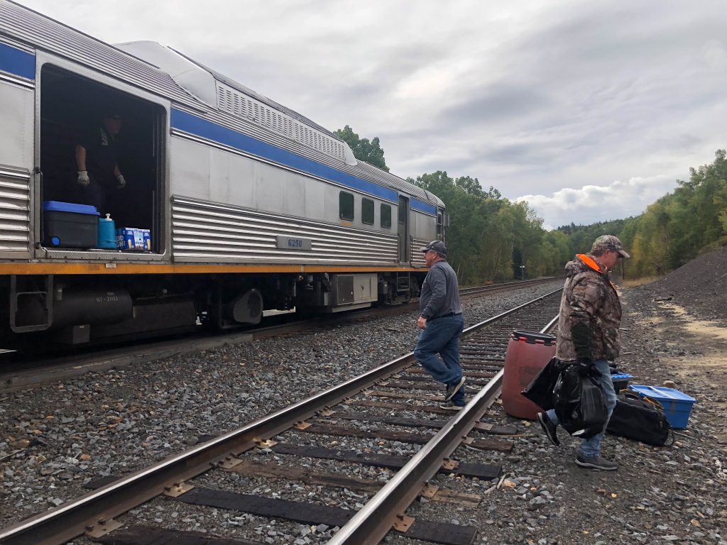 Other than Sudbury, Cartier, Chapleau and White River, all the stops are flag stops and the train will only stop upon request. The train will also stop anywhere, such as dropping off canoeists along the Spanish River or hunters near their camps.