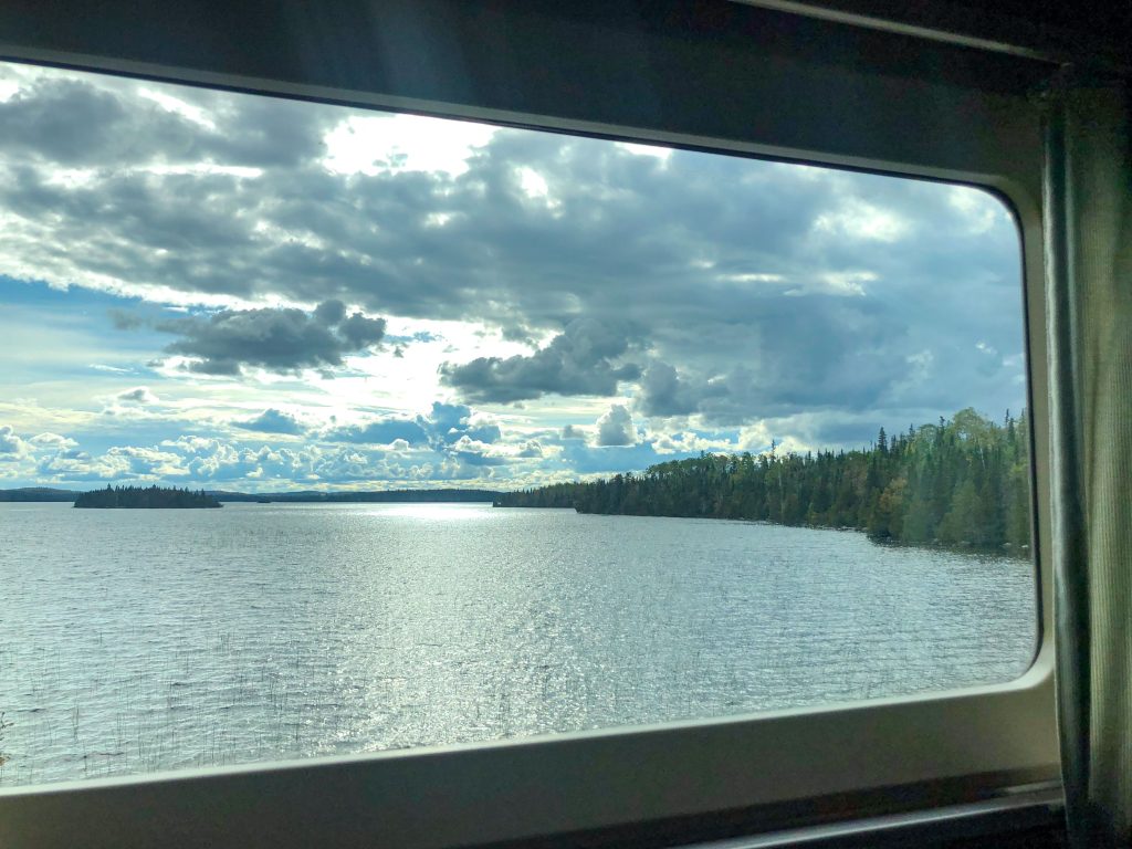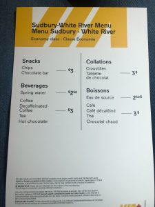 The passengers were on their own for food and refreshments. I had packed sandwiches and snacks from Sudbury for my lunch. The car attendant had a short menu of coffee, tea, water and chips and chocolate bars.